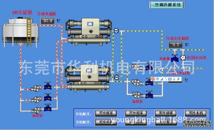 中央空调水系统设备实现系统集成也可叫做中央空调群控管理系统。采用计算机技术、现代通信技术、智能控制技术和变频调速技术,既能与建筑物内的远程监控系统建立通信,实现远程监控;采用模糊控制优化算法模型和系统安全运行控制策略,可动态监测被控设备的运行状态和水系统的工况参数,并实时调整和优化系统运行工况,在保障中央空调安全运行和保障空调末端服务质量的基础上,实现中央空调系统连续、高效的经济运行。